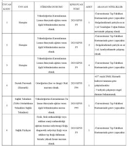 (Not: Kadro sayıları ve unvanlar resmi ilandaki ihtiyaca göre “Hasta Bakım”, “Tekniker” veya “Mühendis” olarak da çeşitlenebilir. Başvuru ekranında nitelik kodlarını kontrol ediniz.)